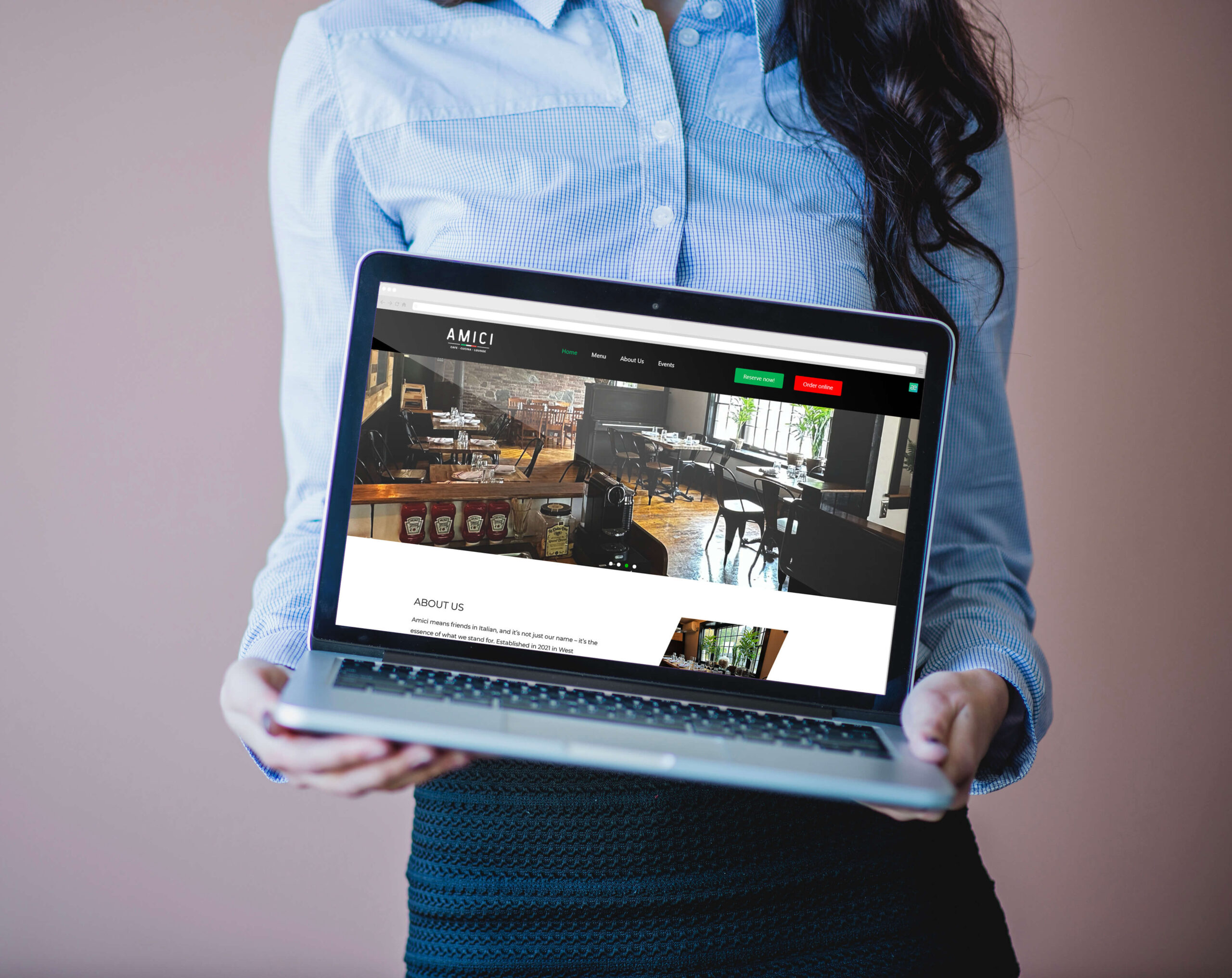 Site web développé pour le restaurant italien AMICI. La cuisine italienne maison, qui rappelle les recettes réconfortantes de votre grand-mère.